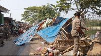 Satpol PP Kabupaten Serang Bongkar Lapak Liar PKL di Dekat Situ Ciherang Cikande