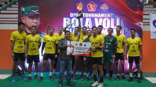 Danrem 071/Wijayakusuma Serahkan Trofi kepada Juara Tim Voli Putra dalam Turnamen Piala Panglima TNI